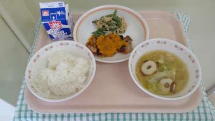 11月1日(火)の献立 公開日 2022/11/01 更新日 2022/11/01 今日の給食 ・ご飯 ・牛乳 ・鶏の紅葉おろしがけ ・ごま和え ・味噌汁 紅葉おろしは人参をペーストにして塩・だし・鶏の肉汁で味付けました。今日のごま和えは切干大根といんげんです。味噌汁には最近お得なキャベツをたっぷり入れました☺ 食材産地 人参 北海道 玉ねぎ 北海道 キャベツ 茨城 いんげん タイ 切干大根 宮崎 鶏肉 岩手