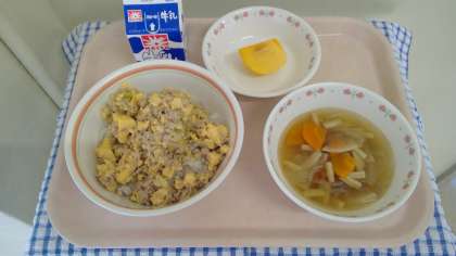 11月2日(水)の献立 公開日 2022/11/02 更新日 2022/11/02 今日の給食 ・そぼろ親子丼 ・牛乳 ・けんちん汁 ・果物(柿) 鶏そぼろをきれいに作るには、調味料とひき肉をよく混ぜてから火にかけるといいそうです。柿もそろそろ終盤です🍂 食材産地 生姜 高知 ねぎ 茨城 大根 千葉 人参 北海道 里芋 埼玉 玉ねぎ 北海道 柿 奈良 鶏肉 岩手