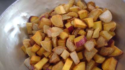 じゃが芋・里芋・さつま芋…3種類のお芋が揚がりました🥔