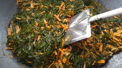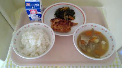 鶏肉をごまと味噌を合わせた調味料に漬けて焼きました。昆布煮はすき昆布を使用しました。すき昆布は乾物なので保存性があり、生切り昆布より薄く味が染みやすいです。