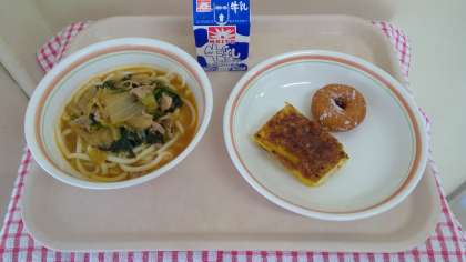 11月14日(月)の献立 公開日 2022/11/14 更新日 2022/11/14 今日の給食 ・キムチうどん ・牛乳 ・キャベツナ卵焼き ・おからドーナツ キムチうどんは全校生徒のリクエストメニューです。ドーナツは生地におからを使っています。献立のエネルギー量に合わせて大きさを変えるので今日はとてもミニサイズです🍩 食材産地 にんにく 青森 生姜 高知 キャベツ 愛知 小松菜 茨城 豚肉 茨城