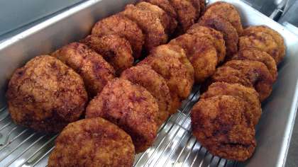 今日は調布農園からご寄付いただいたお米です。1年生が田植え、2年生が稲刈りをしました。献立はメンチカツです☺