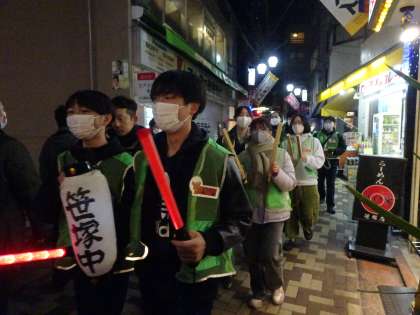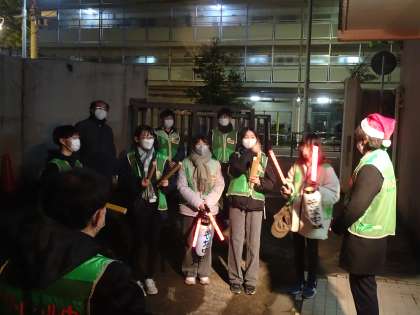 夜回り火の用心がありました 公開日 2022/12/06 更新日 2022/12/06 お知らせ 地区委員会、おやじの会、PTAの皆様と一緒に、夜回り火の用心を行いました。とても寒かったですが、参加した先生・生徒たちは元気いっぱいに声を出し、パトロールに励みました。最後に参加賞をもらい、嬉しそうに帰っていきました。来年は、もっとたくさんの生徒が参加してくれると嬉しいです。