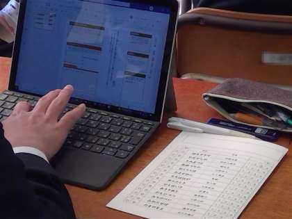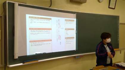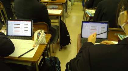 三年生国語科の授業では、「万葉集・古今和歌集・新古今和歌集」の単元で、ミライシードのムーブノートを使って14首の和歌の中から1首を選び、和歌の内容を調べ、作られた時代背景などを調べ、次に同じ和歌を選んだ2〜3人で共同編集をしてまとめて発表をし、和歌への興味を深める機会となっています。