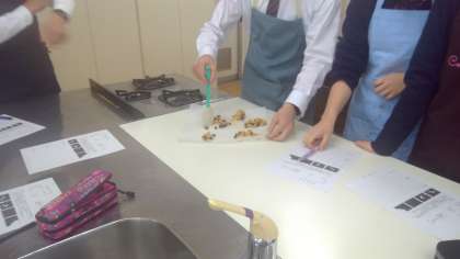 調理していたのは、マシュマロ・フレークボール!廊下にまで、甘くていい匂いがただよっていました。とても美味しそうに出来上がりましたね!!さて、そのお味は…?