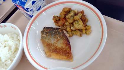 渋谷区ではグラム指定で発注した肉や魚を使用しています。今日はさらに「骨取り」を注文したので、腹骨も中骨も取ってある鯖です🐟