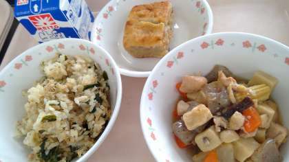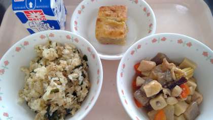 2月28日(火)の献立 公開日 2023/02/28 更新日 2023/02/28 今日の給食 ・ツナわかめご飯 ・牛乳 ・和風五目うま煮 ・バナナパウンドケーキ 混ぜご飯は、炊飯したご飯と調味した具材を混ぜて仕上げます。家庭では調味料と材料を炊飯器にセットして作れます🍚パウンドケーキは、卵とバターをたっぷり使っています。 食材産地 大根 神奈川 人参 千葉 バナナ フィリピン ヤングコーン タイ 筍 熊本 鶏肉 岩手