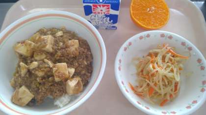 3月2日(木)の献立 公開日 2023/03/02 更新日 2023/03/02 今日の給食 ・麻婆豆腐丼 ・牛乳 ・華風もやし ・果物(はまさき) 麻婆豆腐の調味料は、甜麵醬・オイスターソースです。辛味には豆板醤・ラー油を使っています。果物は佐賀の「はまさき」という柑橘です🍊 食材産地 にんにく 青森 生姜 高知 ねぎ 千葉 もやし 栃木 人参 千葉 はまさき 佐賀 豚肉 茨城