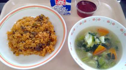 今日から給食が始まります。1年生も一律でスタートです。中学校の給食は小学校より量が増えていきます。また給食時間は短く、スムーズな配膳が大切です。少しずつ中学校生活に慣れていってほしいと思います。