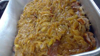 今日は豚肉の生姜焼きです🐷ソテーした豚肉に、生姜入りの玉ねぎソースをかけます。