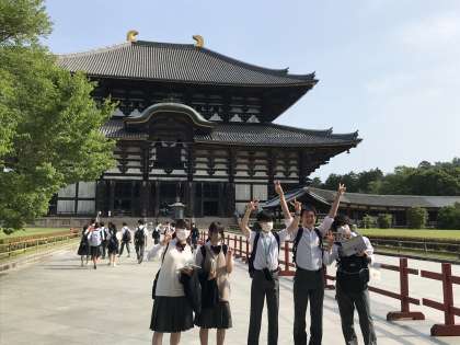修学旅行#8 公開日 2023/05/22 更新日 2023/05/22 3年生 修学旅行2日目スタート!和食の朝ごはんをいただき、観光客がまだ押し寄せていない朝の静かな東大寺到着。いよいよ、班行動開始です。自分達で考えたルートをまわります。班の協力が求められる一日です。チェックポイントでみんなの笑顔に会えることを楽しみにしています!