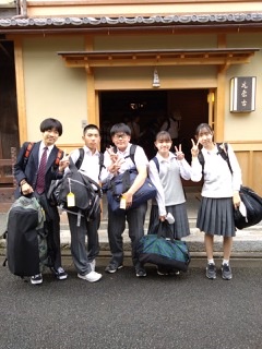 修学旅行#19 公開日 2023/05/23 更新日 2023/05/23 3年生 タクシー乗車前にパシャリ。 宿の皆さんには「ありがとうございました!」 そして「行ってきまーす!」 雨も上がってきました! やっぱり3年生、持ってますね!!