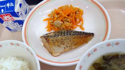 5月24日(水)の献立 公開日 2023/05/24 更新日 2023/05/24 今日の給食 ・ご飯 ・牛乳 ・鯖のみりん焼き ・人参しりしり ・味噌汁 みりん干しは干物の一種で、醤油・みりんに漬けてから干したものです。あいにく手に入らなかったので、切り身の鯖を酒・みりん・醤油に漬けて焼きました🐟 3年生も修学旅行が無事終了し、明日からまた全校での給食です☺ 食材産地 人参 徳島 大根 千葉 ねぎ 茨城 鯖 欧州