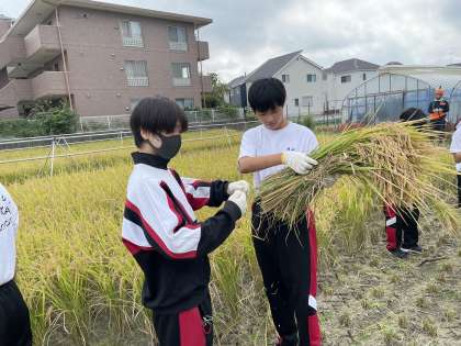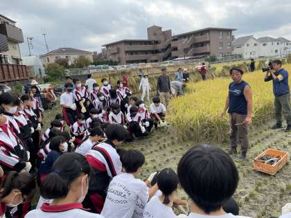 稲刈り体験学習#1 公開日 2023/10/01 更新日 2023/10/01 2年生 第2学年は、本日「稲刈り体験学習」を調布自然観察農園で行っています。予定通り作業が始まりました。昨年度は、田植え体験とは全然違いますね。この貴重な体験は笹塚中学校ならではの行事です。食に感謝を込めて作業頑張りましょう!