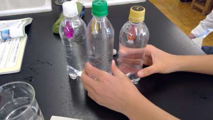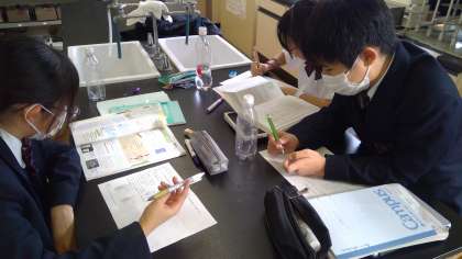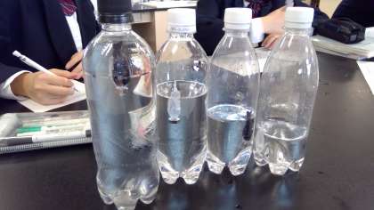 3年 理科 公開日 2023/11/06 更新日 2023/11/06 お知らせ 水中ではたらく力のまとめとして、「浮沈子を作り、水中で浮き沈みする理由を説明しよう」という課題に挑戦しました。魚の形をした容器が沈んだり浮いたりする様子を観察しながら、グループで相談して考えをワークシートにまとめていました。