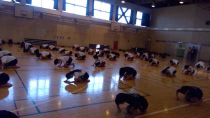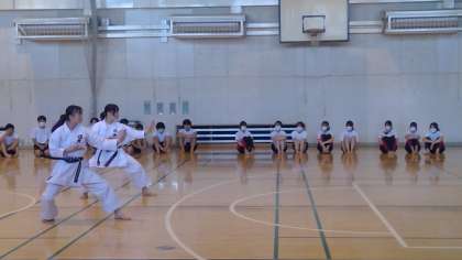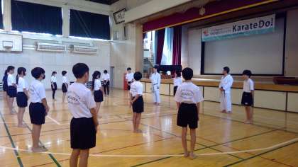 空手の授業 公開日 2023/11/11 更新日 2023/11/11 お知らせ 今週から空手の授業が始まりました。第1回は礼儀作法を中心に練習をしました。日本大学の学生に模範演技も行っていただきました。