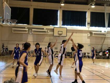 渋谷区バスケットボール部新人大会。本校女子にとっては初戦が始まりました。第一ピリオドから、相手チーム青山学院の攻めに臨機応変に対応してシュートに繋げ、順調に得点をあげています。この調子で、勝ち上がれ‼️