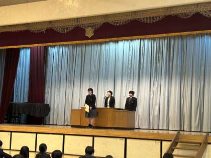 本日の生徒会朝礼では、タイピングコンテスト最優秀賞の生徒の表彰がありました。また、優秀賞の生徒には賞状が配布されています。