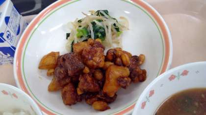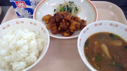 2月29日(木)の献立 公開日 2024/02/29 更新日 2024/02/29 今日の給食 ・ご飯 ・牛乳 ・黒酢酢豚 ・青菜のナムル ・タンタンスープ お酢は苦手な生徒も多いので、給食では旨味や甘味を加えて献立に取り入れています。今日は玄米を使った黒酢を使用しています。 食材産地 じゃが芋 鹿児島 にんにく 青森 もやし 栃木 小松菜 埼玉 玉ねぎ 北海道 ニラ 栃木 生姜 高知 豚肉 茨城 大豆 北海道