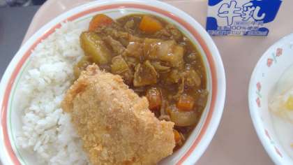 3年生は中学校生活最後のカレーライスです🍛チキンカツをトッピングしました。