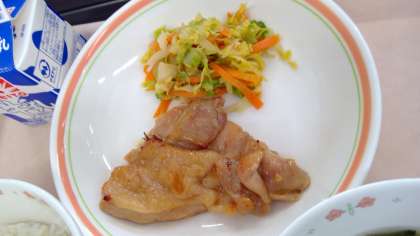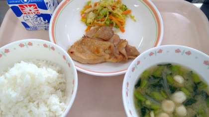 4月15日(月)の献立 公開日 2024/04/15 更新日 2024/04/15 今日の給食 ・ご飯 ・牛乳 ・鶏の照り焼き ・ごま酢和え ・味噌汁 鶏肉は塩麴に漬けてから焼いています。ごまは給食でよく使用する食材です。今日は和え衣に少し酢を入れて、ごま酢にしました。