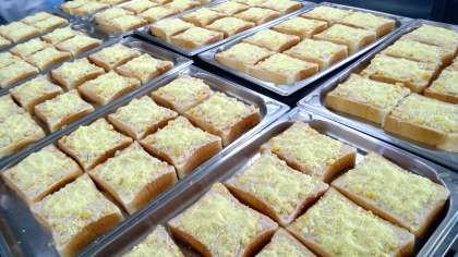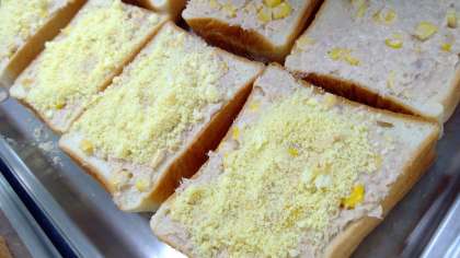 本日はパン屋さんです🍞具材をのせて、その上に粉チーズを重ねます。