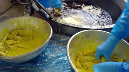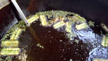 竹輪の二色揚げを作っています。カレー粉と青のりです🍢