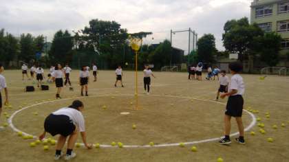 1年生は体育の授業で運動会の個人種目の練習をしています。 玉入れがなかなか難しい…!