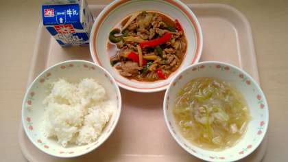 5月28日(火)の献立 公開日 2024/05/28 更新日 2024/05/28 今日の給食 ・ご飯 ・牛乳 ・チンジャオロース ・春雨スープ 【チンジャオロース】豚肉はオーブンで焼き、ほぐしておきます。野菜は7ミリ幅の千切りにして、油を入れたお湯で下茹でしておきます。最後に肉・野菜・調味料を合わせて完成です。 【春雨スープ】スープは鶏ガラ・野菜の皮や外葉を使って出汁をとっています。大体3時間ほど炊いて濾しています。