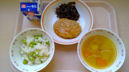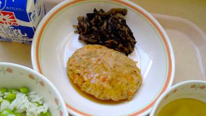 枝豆にはビタミンB1が多く含まれています。ビタミンB1はエネルギー代謝や疲労回復に必要な栄養素です。とりつくねには人参・玉ねぎ・筍・干し椎茸のみじん切りが入っています。いよいよ暑くなってきました。毎日の食事でしっかり体調管理をしましょう💪