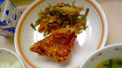 6月25日(火)の献立 公開日 2024/06/25 更新日 2024/06/25 今日の給食 ・ご飯 ・牛乳 ・赤魚の唐揚げ ・茎わかめのきんぴら ・味噌汁 赤魚は総称で、アラスカメヌケ・タイセイヨウアカウオ・ロシアアカウオなどがあるそうです。今日はアラスカメヌケを使用しました🐟酒・醤油などに漬けて唐揚げにしました。 茎わかめはわかめの茎の部分です。ちなみにわかめの根本の部分がめかぶです。