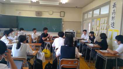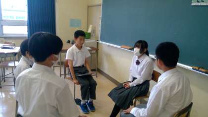 本日の1時間目は、職業インタビューの事前指導を行いました。実際に模擬インタビューをして、お互いに改善点を修正できるように努力しました。