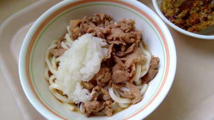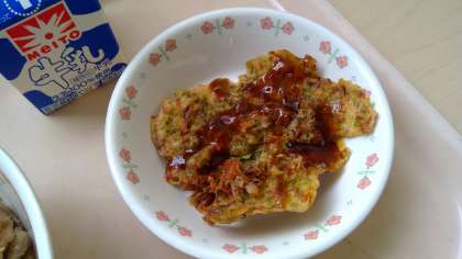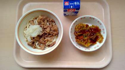 7月2日(火)の献立 公開日 2024/07/02 更新日 2024/07/02 今日の給食 ・おろし肉うどん ・牛乳 ・お好み揚げ うどんのつゆはかつおだし・酒・みりん・砂糖・醤油で作っています。大根おろしと甘辛に炊いた豚肉をのせていただきます🍜 お好み揚げはお好み焼きの生地を揚げたものです。学校給食では両面を焼く、という調理が難しいので成形して揚げています。 給食室も暑くなってきて、室温30度を超える日が続きます🌞衛生管理・体調管理に気を付けてまいります💪
