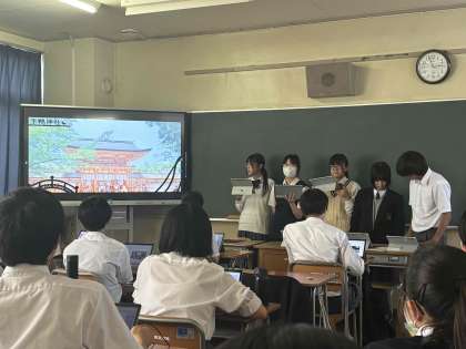 先週の木曜日から、3年生は「修学旅行事後学習 発表会」を行っています。どの班も個性があって素晴らしいプレゼンテーション!作成にあたっては、“中1・2年生に京都・奈良の魅力を伝える”をコンセプトにしています。学芸発表会や展示発表会でも発表、掲示予定です。お楽しみに!