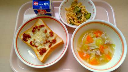 7月10日(水)の献立 公開日 2024/07/10 更新日 2024/07/10 今日の給食 ・照りツナトースト ・牛乳 ・和風マカロニサラダ ・ポトフ ツナをみりん醤油で調味して、水分を飛ばします。食パンに広げてチーズを重ねて焼いて完成です🍞 ポトフはフランスの家庭料理です。具材を大きいまま煮込む料理ですが、給食では一口サイズにカットして煮込んでいます🍴