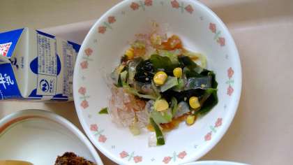 海藻サラダにはわかめ・赤とさか・寒天が入っています。