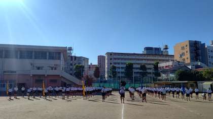 「秋晴れ」最高の天候の中、運動会予行練習を実施しています。久し振りの学校行事、コロナ対策をしながらとなりますが、自分たちで創る「運動会」頑張っています。