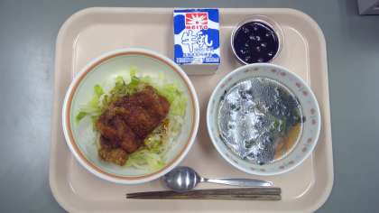 明日は運動会なので、チキンカツ(勝つ)丼です。ブルーベリーは砂糖で炊いて、ぶどうジュースと合わせてゼリーにしました。明日の本番、怪我無く無事に終えられることを願っています。