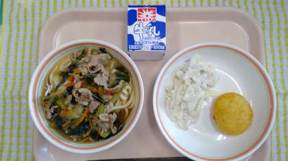 うどんの日は茹でたうどんを各クラスに分けたり、つゆを作ったりするので大忙しです。今日はさらにじゃがもちも作っていただきました。レンコンサラダもシャキシャキです✨