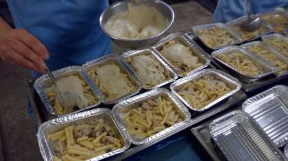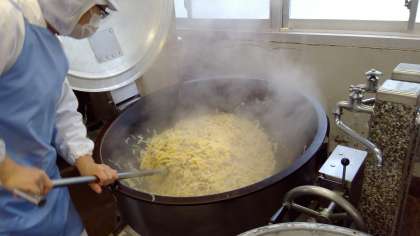 具材をトレーに入れ、上にホワイトソースをのせます。