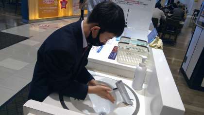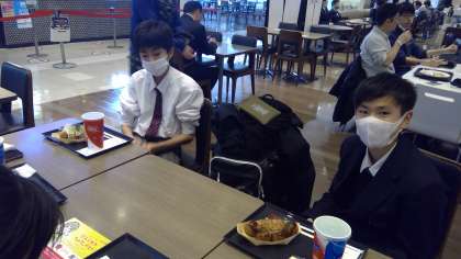 しっかりと手を洗い、距離をとっての食事です。