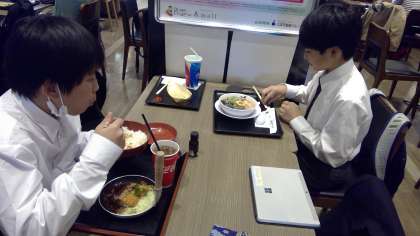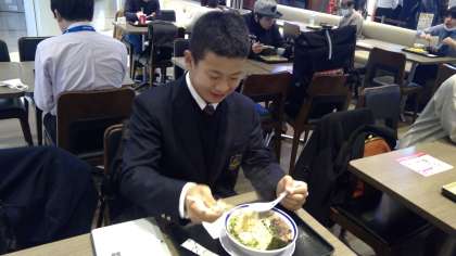 1年 お台場 公開日 2020/12/11 更新日 2020/12/11 1年生 お腹を空かせた笹中生が続々とフードコートに到着します。 冷えた体にラーメンは最高です。 あれ?さっきたこ焼き食べてた君、今度はラーメン食べるの? あれ?さっき親子丼食べてたけど、今度はカツ煮定食ですか? 食欲全開!!午後の見学に向けてしっかりとエネルギーを補給しよう!!