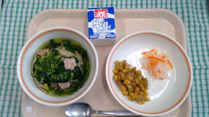 あけましておめでとうございます🎍今年最初の給食は、七草あんかけご飯です。大豆小魚は、田作りの代わりです🐟なますは苦手な人が多いそうです。年に数回献立に取り入れています☺
