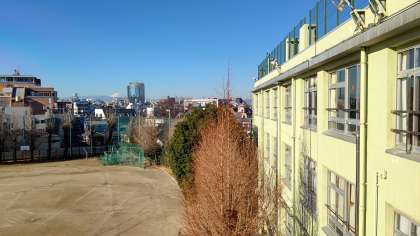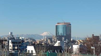 昨日の南岸低気圧の雪(雨)により、今朝は大気が澄み、本校からも青空と「富士山」が美しく観ることができました。。