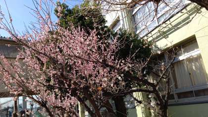 正門近くの梅は満開です。チューリップもたくさん(60球植えました)芽が出てきました。玄関のハナニラの開花もはじまりました。
