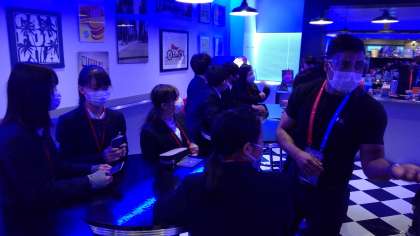 1年生 校外学習 TGG 11 公開日 2021/03/04 更新日 2021/03/04 1年生 続いてこちらはファーストフード店の業務です。 「好きなハンバーガー店は?」「飲み物は何が好きですか?」など情報交換をしています。