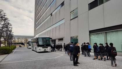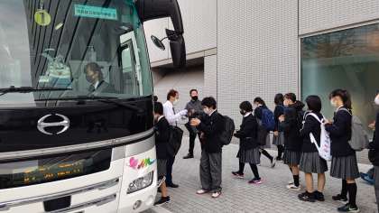 手指消毒をしてバスに乗りました。帰りは一般道で都心を抜けて帰ります。