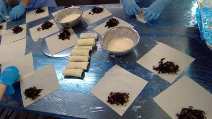 昨日はシュウマイ大会でしたが、今日は春巻大会です。連日の大会、調理さんありがとうございます。