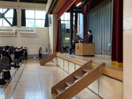 本日、着任式・始業式を行いました。春休み中大きな事故等なく、皆で顔をそろえることができました。