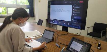 本日は土曜授業ですが、生徒の皆さんは自宅からオンラインで授業を受けています。先生たちは、デジタル教科書やパワーポイント、黒板など様々なツールを駆使し、工夫を凝らしながら各教科の特性や得意分野を生かして授業をしていました。生徒の皆さんがぐんぐん成長しているように、先生たちも“学びを止めない”ために、日々進化していきます!